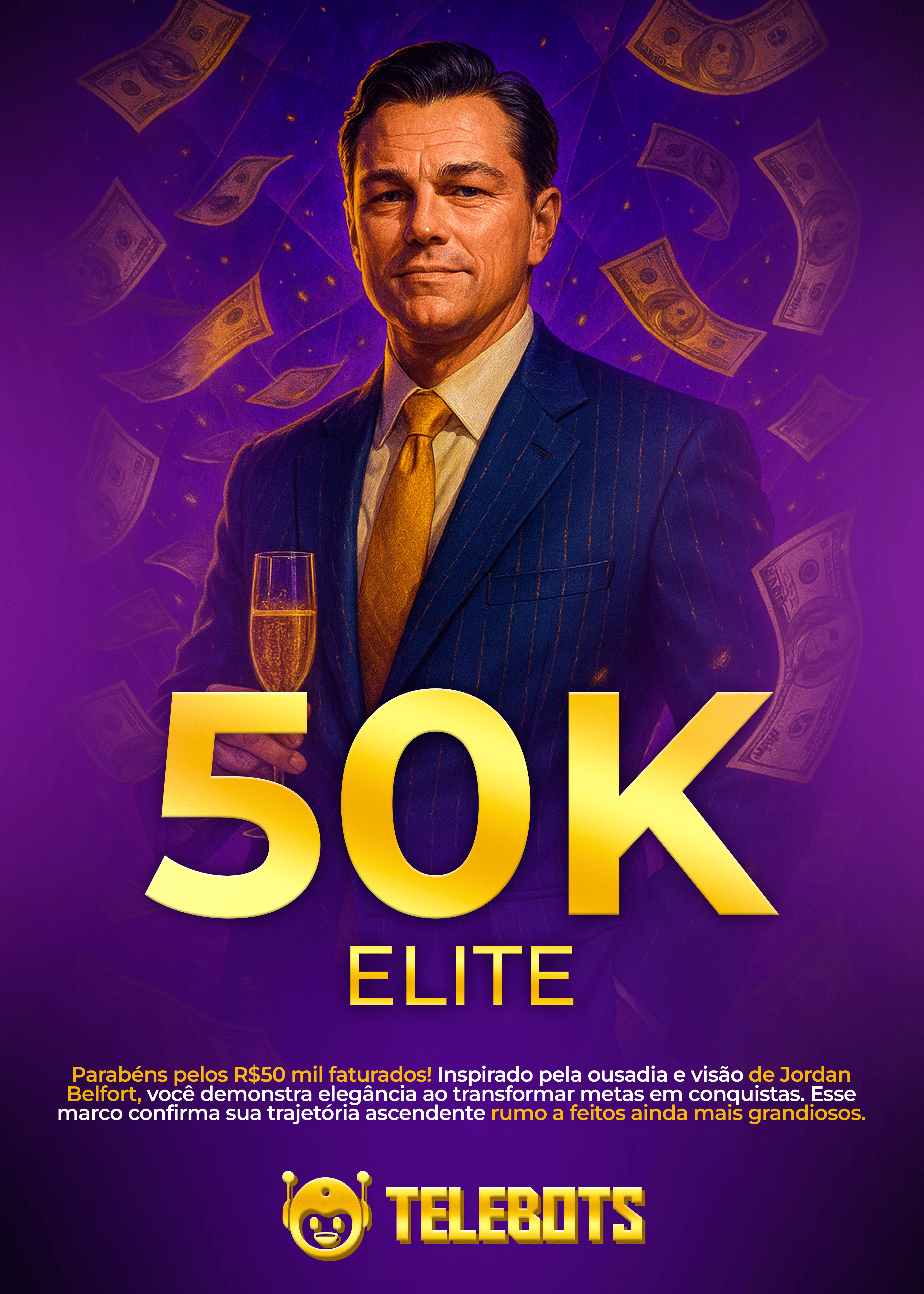 Parabéns pelos R$50 mil faturados! Inspirado pela ousadia e visão de Jordan Belfort, você demonstra elegância ao transformar metas em conquistas. Esse marco confirma sua trajetória ascendente rumo a feitos ainda mais grandiosos.